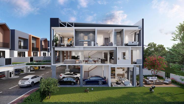 Spanning 22 acres of freehold land, the 3-storey villas are designed to harmonize with their natural surroundings. The lush greenery inspires the modern architectural design, creating a serene and inviting living environment.