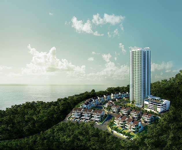Bayu Ferringhi is an upmarket residential development by Plenitude Berhad that encompasses a condominium and three-storey semi-detached houses. This freehold development sits on elevated grounds and showcases magnificent sea views.