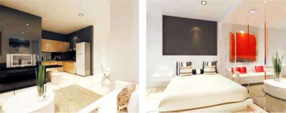 The state-of-the art semi-furnished studio suites are comfortably sized at 527 and 622 sq ft, with practical layouts. But it s the little touches that make a difference the plaster ceiling with down lights, the bathroom vanity top complete with mirror, the low cabinets and the ceiling fan and two air conditioners for a polished finish.