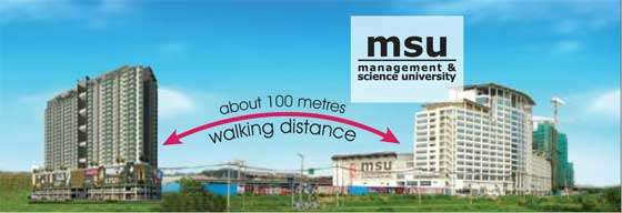 Students and parents would give MENARA U an A+ for its proximity to institutes of higher learning. The development is a 5-minute, or 100m, walk from the Management & Science University, with the PTPL College and Politeknik Sultan Salahuddin Abdul Aziz Shah less than 5km away.