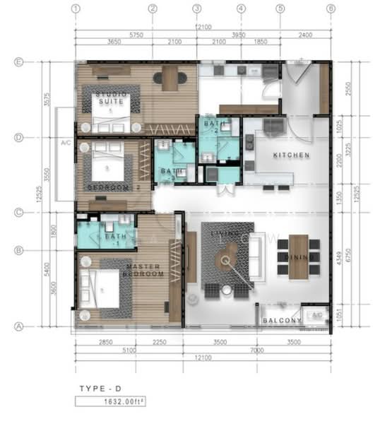 Saiz lantai unit ini ialah 1,632 kps.