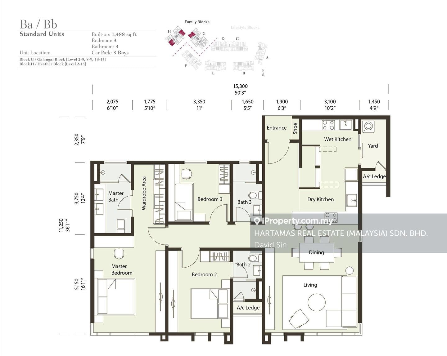 4) 3 bedrooms, 3 bathrooms, 3 carparks