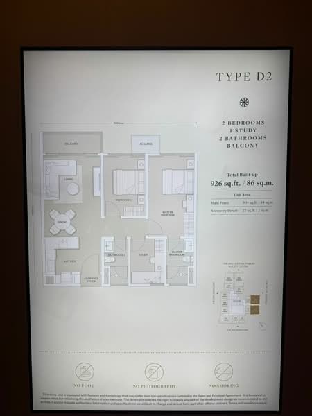 2+1 Bedrooms 2 Bathrooms (with Balcony) — 926 sf
