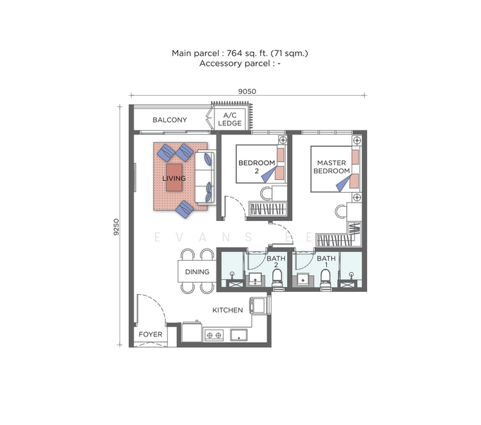 [ Type A - 764 Sqft - 2Room2bath ]