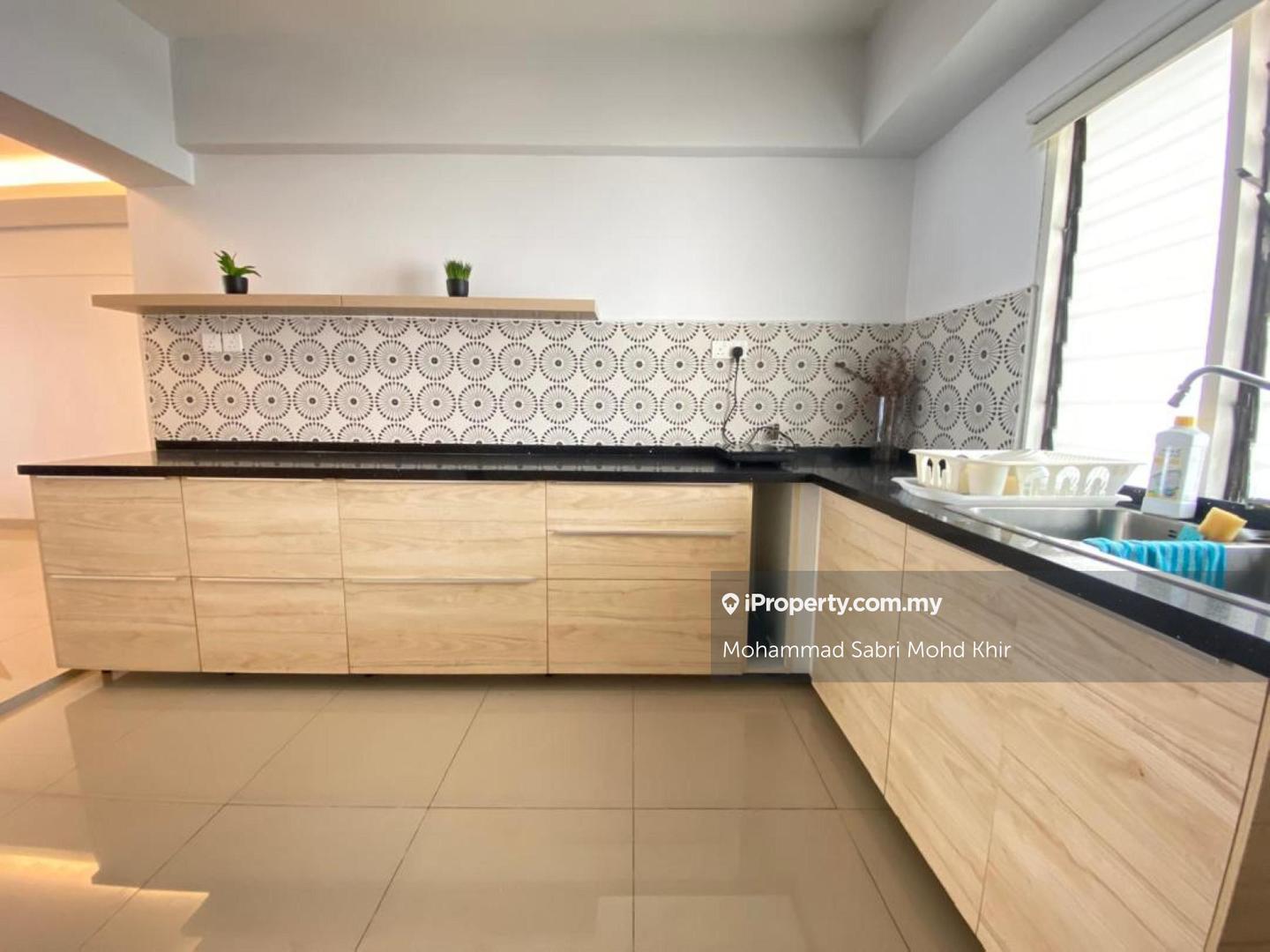 - Furnished: Sofas, TV cabinet, ceiling fan, coffee/side table, dining table + 6 chairs, built-in kitchen cabinet