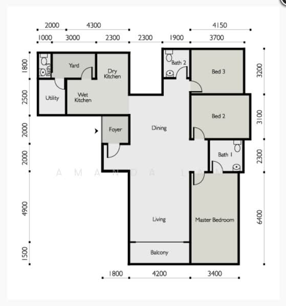 。三间卧室和一间佣人房