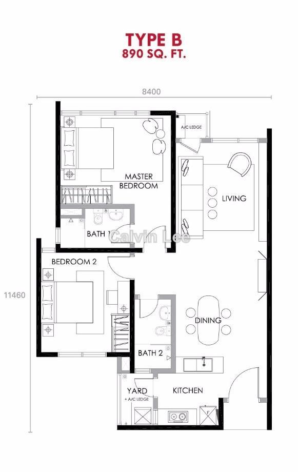 2) 890sf: 2Bed, 2Bath