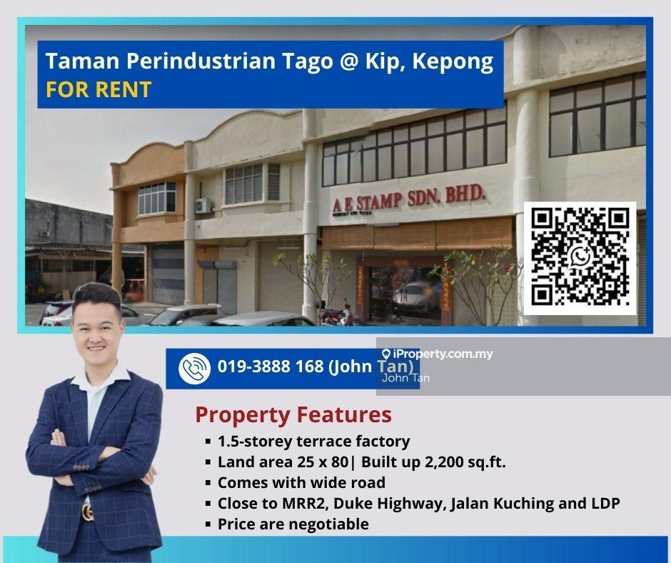 (25x80 | Negotiable) Kepong, Kip @ Tago 1.5sty Factory, Taman Perindustrian Tago, Kepong