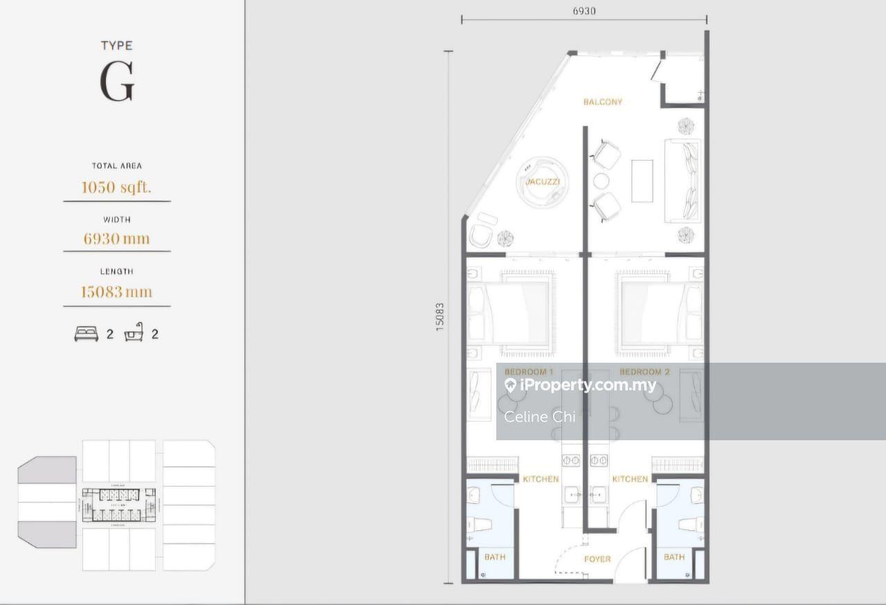 Saiz lantai unit ini ialah 1,050 kps.