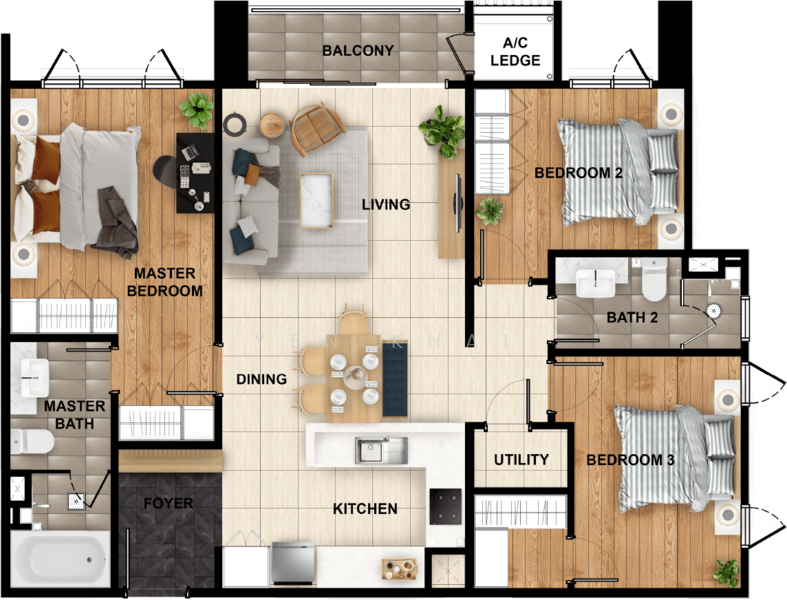 d. 1170sqft, 3bedroom 2bath, RM8600 - RM9200 Fully Furnished