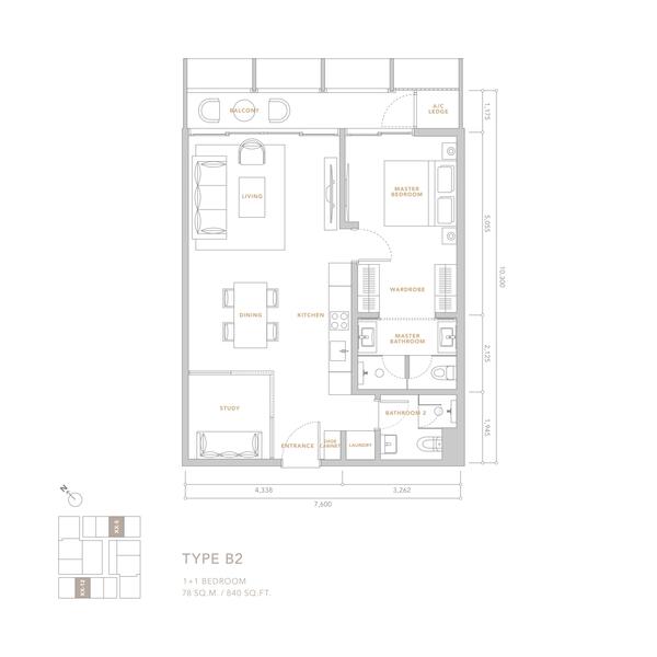 1+1房 2浴室 (阳台)