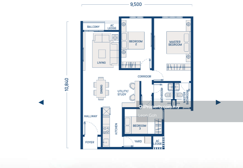 Size : 1030 sqft