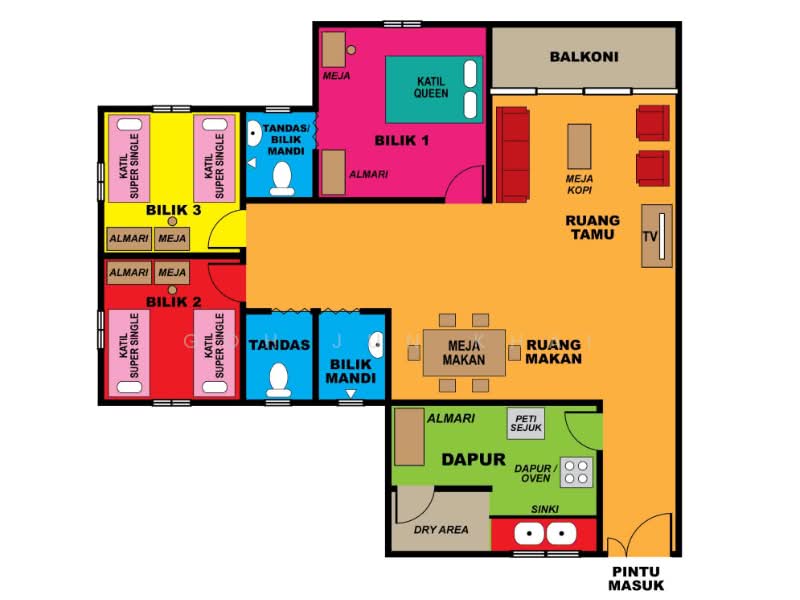 - 3 Bilik Tidur