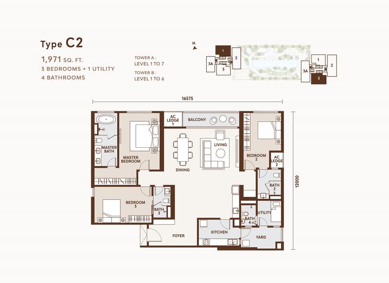 1,971 sqft 3 bedrooms 3 bathrooms 1 store / maid’s room