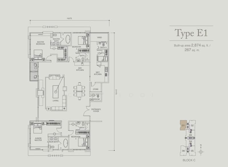 Saiz lantai unit ini ialah 2,874 kps.