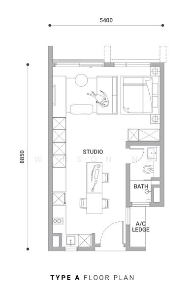 Type A: 474sqft (Studio)
