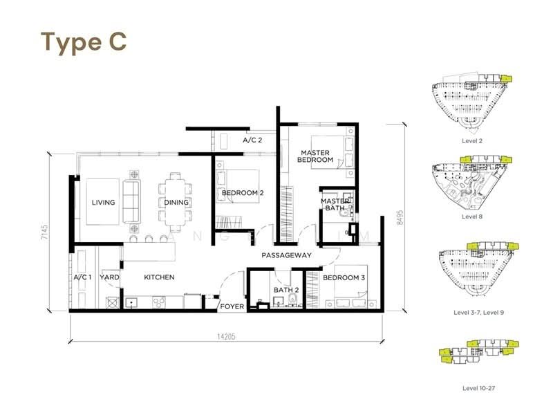 Type C: 1,055 Square Feet.