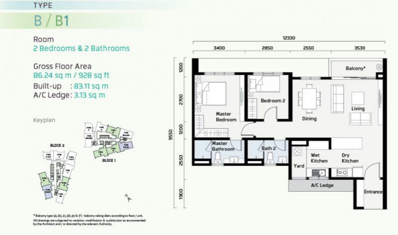 5) 2 bedrooms, 2 bathrooms, 1 parking bay