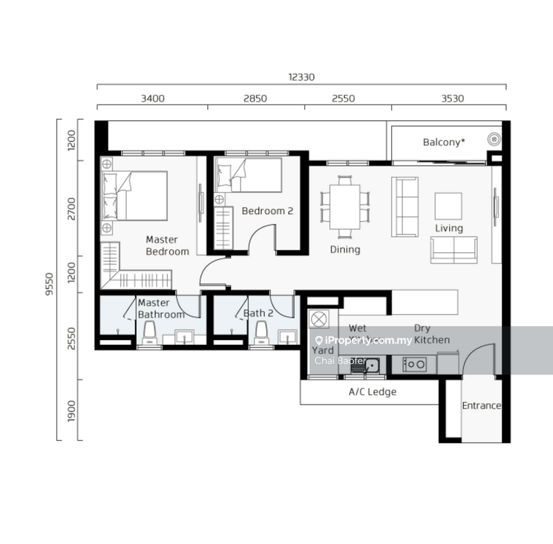Layout: 2 bedrooms, 2 bathrooms