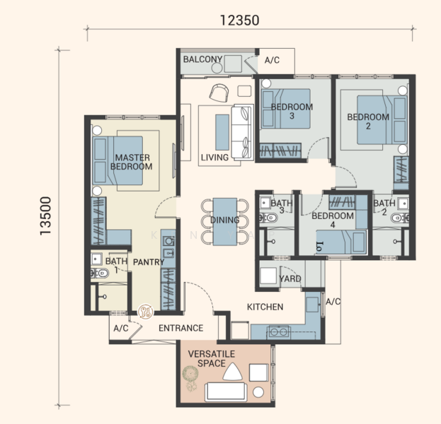 947 to 1,302sf (3 to 4 Bedrooms) - Dual Key available