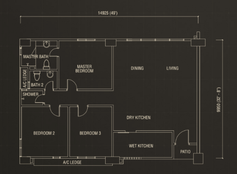 Saiz lantai unit ini ialah 1,690 kps.