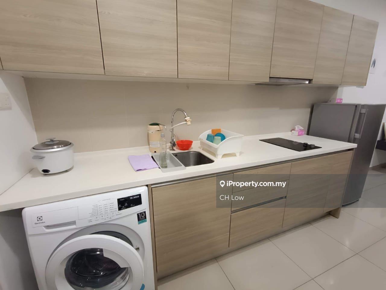 -Fully furnished which includes sofa bed, dining table & chairs, curtains, coffee table, TV, air-conds in living, bedroom & study room, water heater, built in kitchen cabinet with hoods & hobs, fridge & washing machine, Queen size bedroom set, built-in wardrobe, study table & chair.