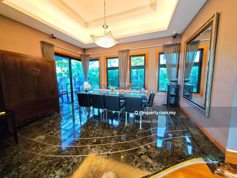 Car porch (3 cars), living hall, karaoke/TV lounge, dining areas, dry/wet kitchen, swimming pool, sauna, massage terrace, guest bedroom, bathrooms.
