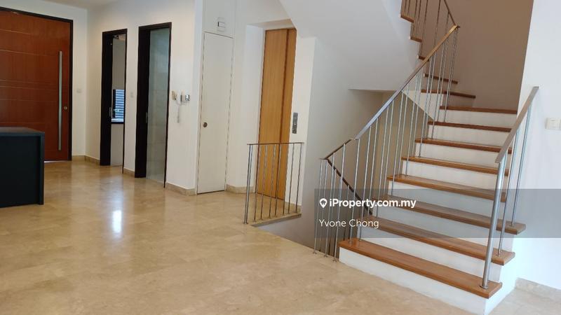 SUBJECT PROPERTY: This is cornor lot consists of 3.5 storeys link bungalow with own private lift, it is comprising 4 en-suite bedrooms including masterbedroom on the top floor with private 36 foot pool,sun deck and roof terrace. down to 1st floor consists of 2 en-suites bedrooms with balcony and a family hall. Ground floor is a family and dinning hall open to a deck/balcony with a fully equipped designer kichen in dry and wet kitchen, a powder room and yard . heading down to the basement floor consists of 1 en-suite guest room open to terrace , utility room , laundry room and 2 car park area. Added feature are alarm system smart home ,CCTVS and private garage. all room comes with walk in wardrobe.