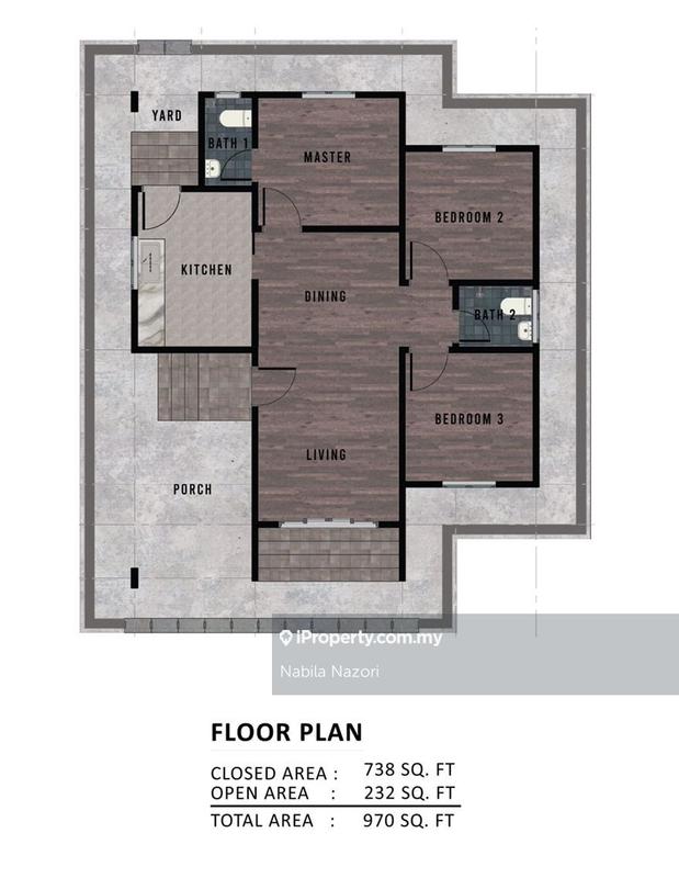 Keluasan bangunan 970 sqft