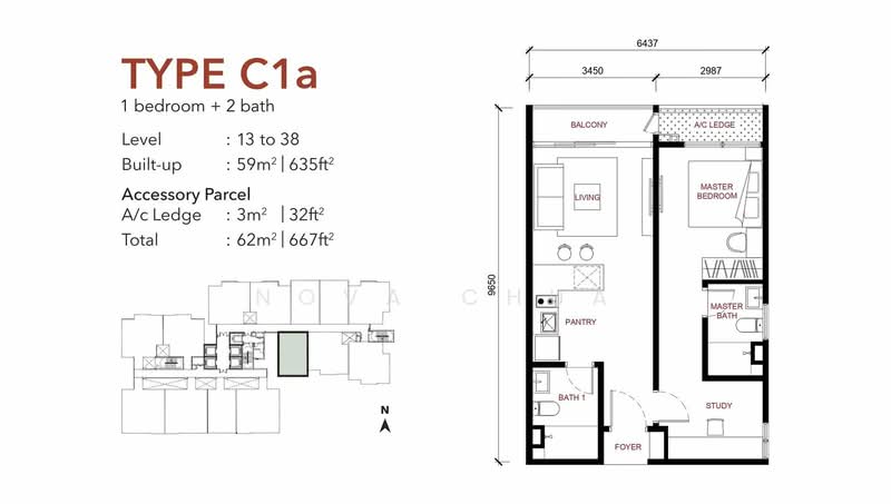 ~ Type C – 667sf (1+1 Bedroom 1 Bathroom)