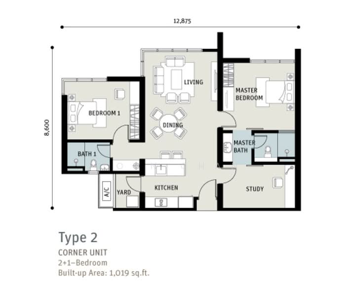 Saiz lantai unit ini ialah 1,019 kps.