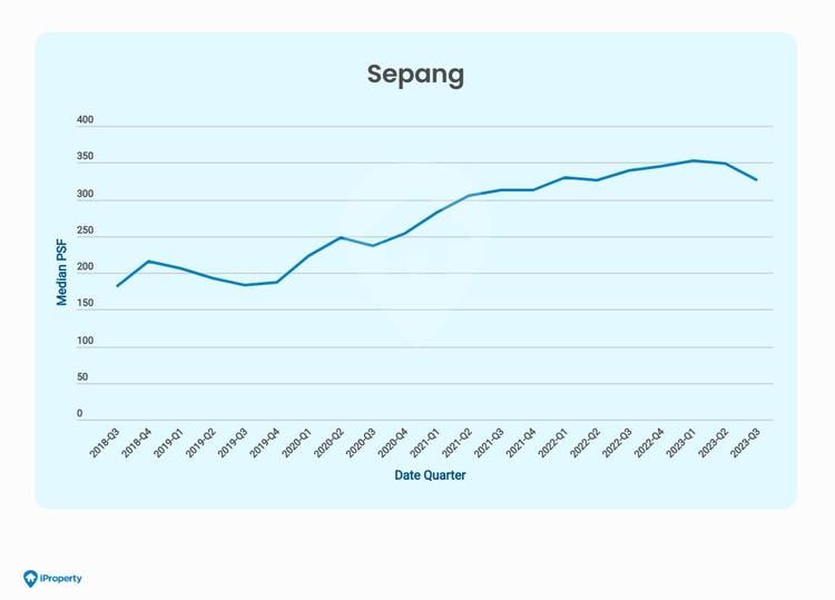 The proof is in the pudding. The latest data shows that Sepang has outperformed Petaling Jaya in median per square feet (psf) growth since 2018. From Q32018 to Q32023, the median psf for landed homes in Petaling Jaya increased from RM428 to RM500, a respectable 17% growth. In comparison, during the same period, the median psf for landed homes in Sepang increased from RM181 to RM325, a whopping 80% growth. This is music to the ears of property investors who crave long-term returns.