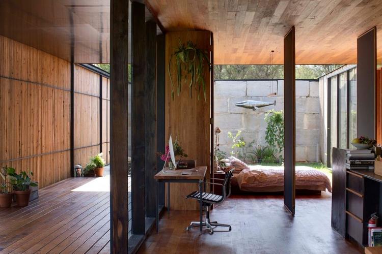 Large sections of the roof and façade have also been mechanised so that the owners can add and subtract natural light as the seasons shift.