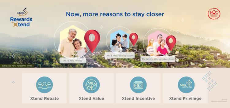 With Citizen Setia Rewards Xtend, Citizen Setia can extend their Loyal Customer Rebate (LCR) to multiple immediate family members including their parents, spouse, siblings and children upon confirming their purchase of S P Setia’s selected properties. The rebates are up to 3% depending on the existing Citizen Setia’s rebate tier with no minimum purchase price.