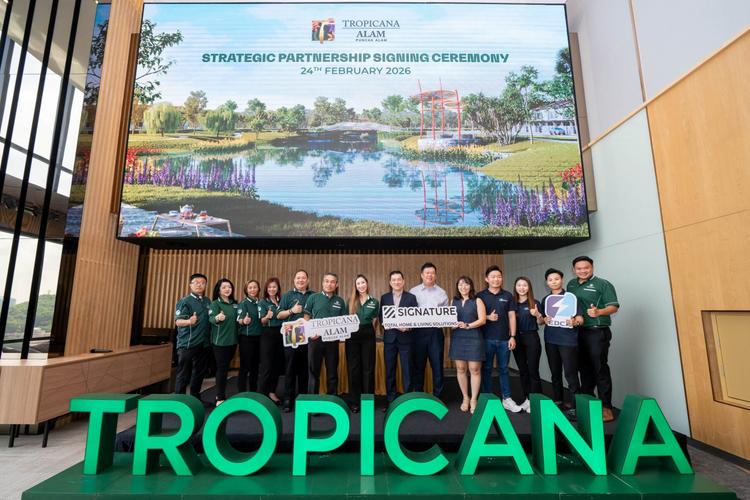 Petaling Jaya (24 February 2026) – Today, Tropicana Corporation Berhad (“Tropicana” or the “Group”) marked another milestone for Tropicana Alam, its first mixed-use development in Puncak Alam, with a dual inaugural signing ceremony alongside Signature Distribution Sdn Bhd (“Signature”) and EDCA Sdn Bhd (“EDCA Energy”). These partnerships underscore the Group’s strong ESG commitment as a 4-star ESG-rated company. The collaboration reinforces Tropicana’s dedication to sustainable practices and green building excellence, while enhancing the homeownership experience at Avisa Residences.