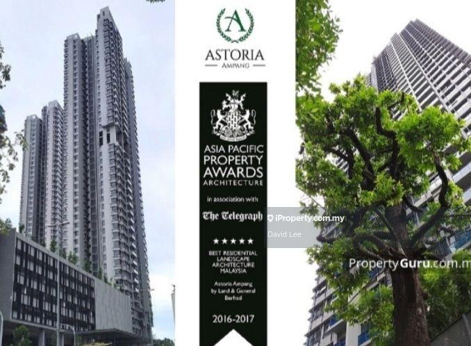 Astoria Ampang is a luxurious leasehold serviced residence located off Jalan Ampang. Developed by the award-winning developer, Land & General Berhad, the said property is also awarded the Best Residential Landscape Architecture Malaysia by the Asia Pacific Property Awards 2016-2017.Completed in 2020, the said development comprises four 46-storey towers that house a total of 1,012 units, with built-up sizes ranging from 460 sq ft to 1,505 sq ft.Type A - 560 sq ft (1 Bedroom + 1 Bathroom)Type B/B1 - 735 sq ft (2 Bedrooms + 2 Bathrooms)Type C/C1 - 888 sq ft (2+1 Bedrooms + 2 Bathrooms)Type D - 1,050 sq ft (3 Bedrooms + 2 Bathrooms)Type E - 1,505 sq ft (4 Bedrooms + 3 Bathrooms)Aiming to provide its residents with a serenity living in the middle of the city, the developer has emphasized biodiversity with carefully selected species of plants, trees and flowers to attract certain species of bugs, butterflies, birds and beetles, etc. The entire development was designed with the said theme in mind, hence, some other appealing facilities include a cascading pond, meandering stream, pool pavilion, several thematic gardens, eco-trail, yoga deck, hammock garden and waterfall. Other facilities well-suited for all generations include a swimming pool, wading pool, children’s playground, jogging and cycling tracks, gymnasium, jacuzzi, sunken tennis court, barbecue corner, theatre and a recreational lounge.This prime neighbourhood is encircled by a wide array of urban conveniences and shopping malls such as the Village Grocer M City Ampang (750m), Ampang Point Shopping Centre (2km), Great Eastern Mall (2km), Suria KLCC (5km), Avenue K (5km), Berjaya Times Square (7.1km) and Pavilion Kuala Lumpur (9km).Residents in Astoria Ampang are privileged with easy vehicular accessibility via major highways and roads such as the Ampang-Kuala Lumpur Elevated Highway (AKLEH), Middle Ring Road 2 (MRR2), Duta-Ulu Kelang Expressway (DUKE), SMART Tunnel, MAJU Expressway (MEX), Jalan Jelatek, Jalan Ampang and Jalan Tun Razak.The nearest bus lines:Bus 253, 300The nearest LRT lines: Dato Keramat LRT, Cahaya LRT, Ampang Park LRT, Jelatek LRT, Pandan Indah LRT, Cahaya LRTThe nearest Monorail: Bukit Nanas MonorailSchools and colleges serving the community include the SMK Hulu Kelang (600m), SK (1) Kuala Ampang (700m), Flamingo International College (1km), Kolej Teknologi Bestari Cawangan Ampang (2km), Sayfol International School (3km) and International School of Kuala Lumpur, ISKL (3km) and SJKC Chung Hwa (P) KL (3km).The said locale also comprises quality healthcare facilities like KPJ Ampang Puteri Specialist Hospital (1km), Gleneagles Kuala Lumpur (1km), HSC Medical Centre (3km) and Prince Court Medical Centre (5km).Astoria Ampang is a gated-guarded residence that encompasses a comprehensive three-tier security system. Some of the recreational parks available in the vicinity include Taman Tasik Ampang Hilir (2km) and KLCC Park (5km).Updated on 15-Aug-2022