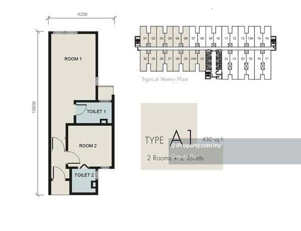 This floor size of this unit is 430 sqft.