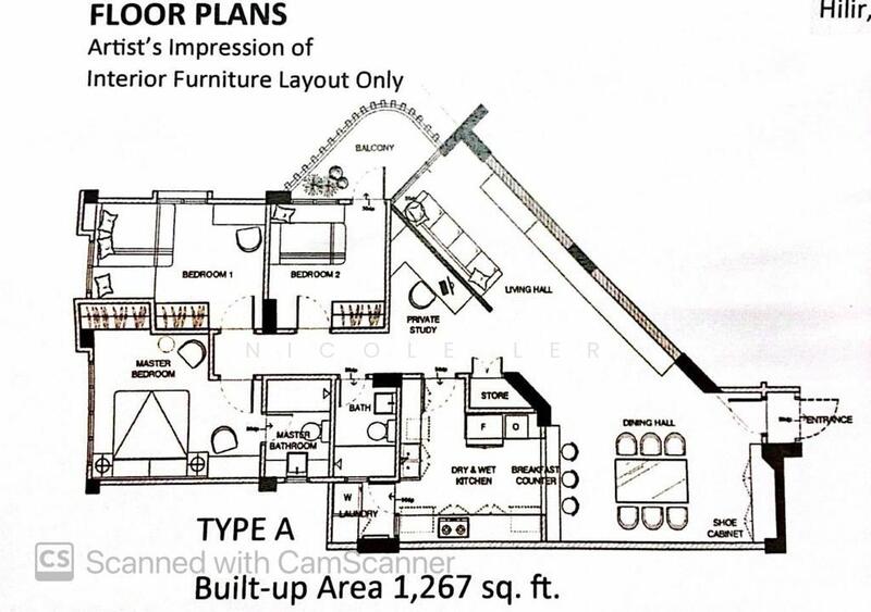 This floor size of this unit is 1,267 sqft.