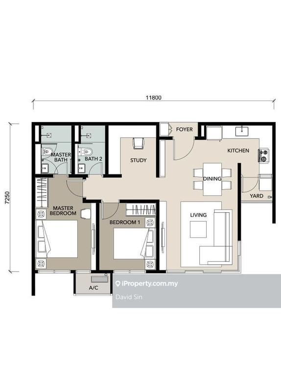 6) 2 bedrooms, 1 study room, 2 bathrooms, 2 carparks