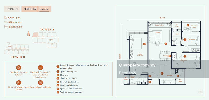 This floor size of this unit is 1,206 sqft.