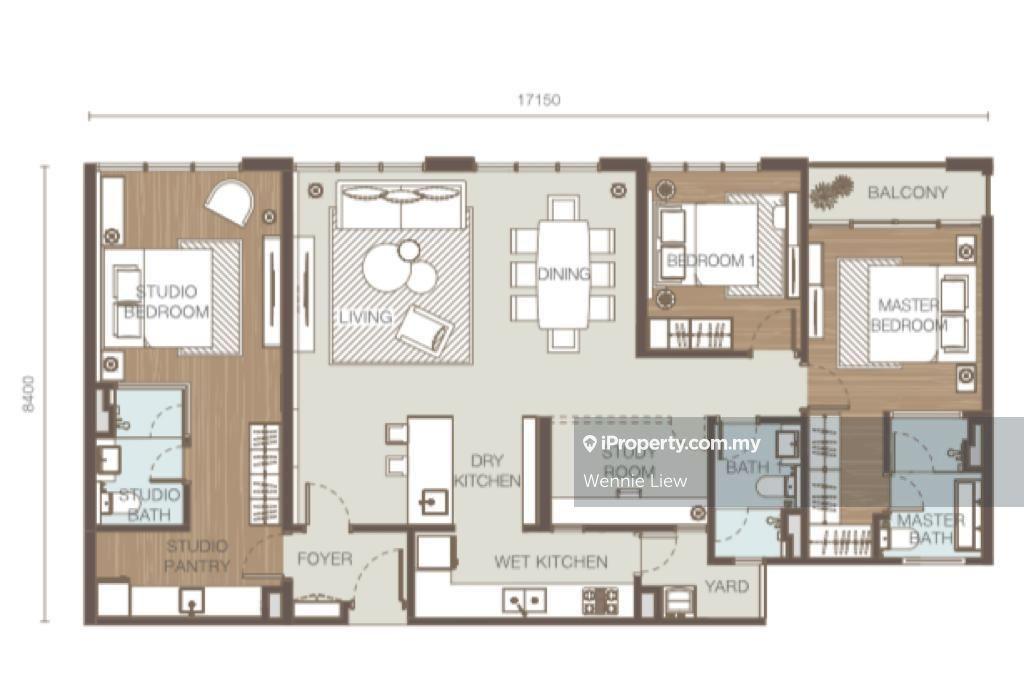 This is 2 bedrooms + 1 Studio + 1 study room.