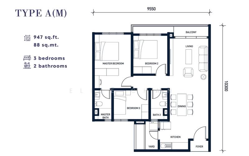 950sqft-1300sqft (3-4Room / Duel Key )