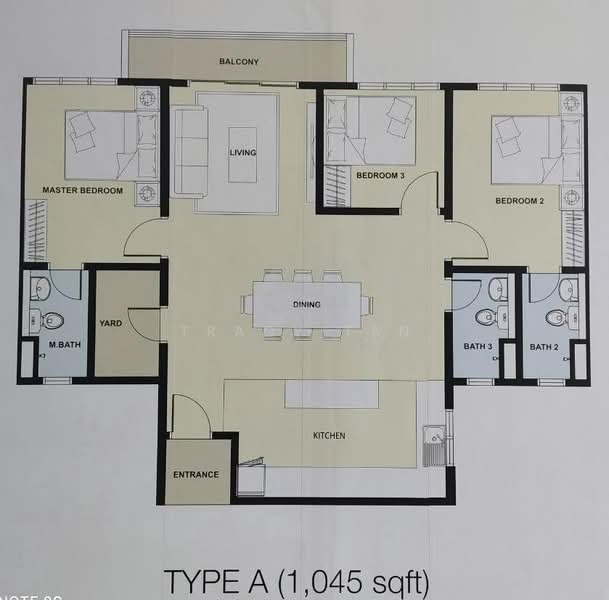 This floor size of this unit is 1,045 sqft.
