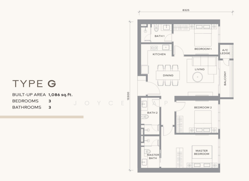 Spacious 1,086 sq ft | 3 Bedrooms | 3 Bathrooms