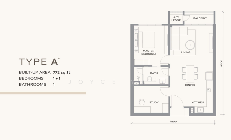 This floor size of this unit is 772 sqft.