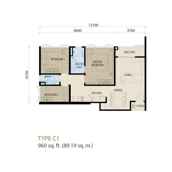 This floor size of this unit is 960 sqft.