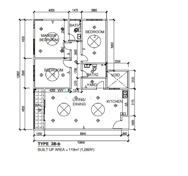 This floor size of this unit is 1,280 sqft.