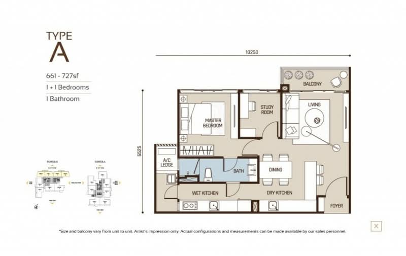 Built Up : 657sqft