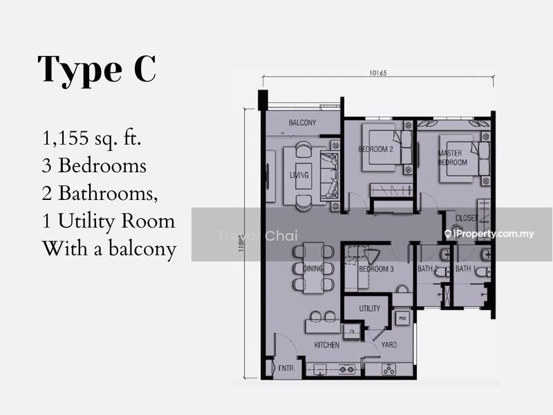 Unit Size: 1,155sf