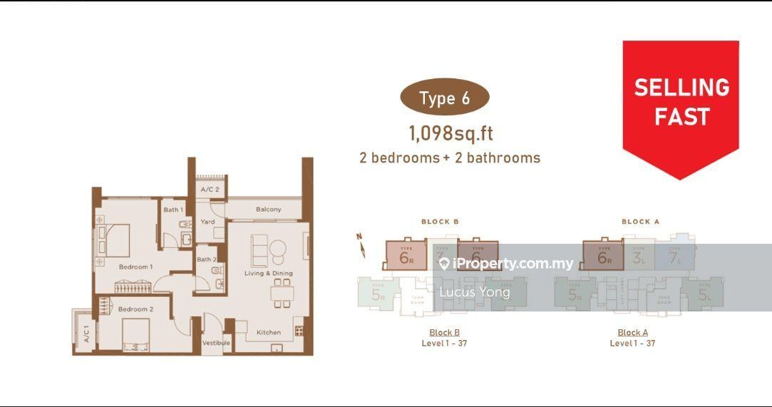 This floor size of this unit is 1,098 sqft.